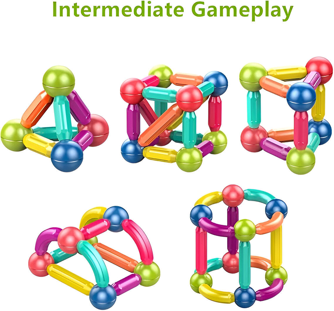 Description: Unleash your child's creativity and imagination with the Magnetic Sticks set! This 36-piece set is perfect for kids who love to build and create. With colorful magnetic sticks and balls, children can construct various shapes, structures, and designs, enhancing their STEM skills through play.